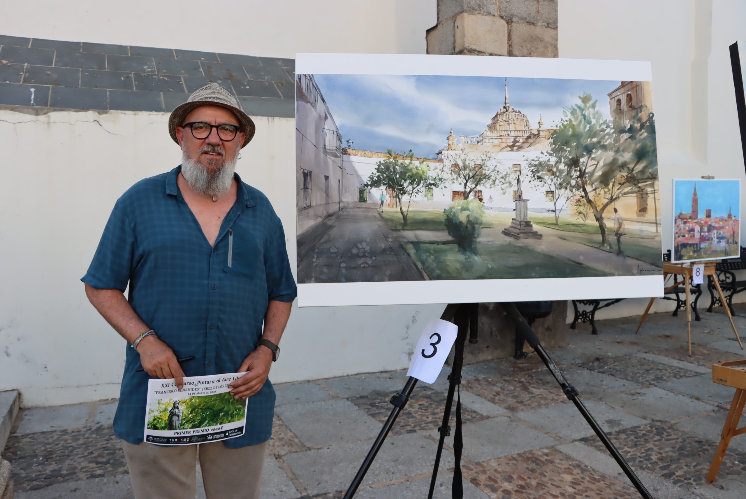 Federico Plasencia Chacón, de Cáceres, ha sido el ganador del XXI Concurso de Pintura al Aire Libre ‘Francisco Benavides’ que se ha celebrado hoy en Jerez de los Caballeros, organizado por el Ayuntamiento de esta ciudad. El artista cacereño ha merecido el primer premio, dotado con 2.000 euros, por una obra en la que plasmado el coqueto parque de la Plaza de Santa María con una luz muy especial. El segundo premio, con una cuantía de 1.500 euros, ha correspondido a Diego Manuel Fernández González, de Gijón, quien ha encontrado la inspiración en el retablo de azulejería del templo patronal de San Bartomé, mientras que el tercer premio, dotado con 1.000 euros, ha sido para Carlos Alberto Dovao Hidalgo de Almonaster la Real (Huelva), que ha plasmado una vista de la torre céntrica de San Miguel Arcángel desde una calle aledaña. Además, se han entregado tres accésits de 150 euros cada uno a: Miguel Soto Sánchez de Medina, de Sevilla; Francisco Abel Vellarino Díaz, de Oliva de la Frontera (Badajoz) y Antonio Langoyo Durán, de Badajoz.