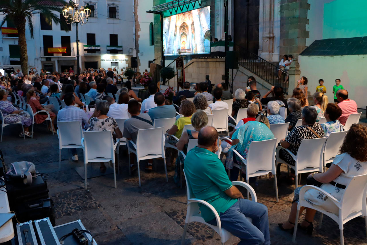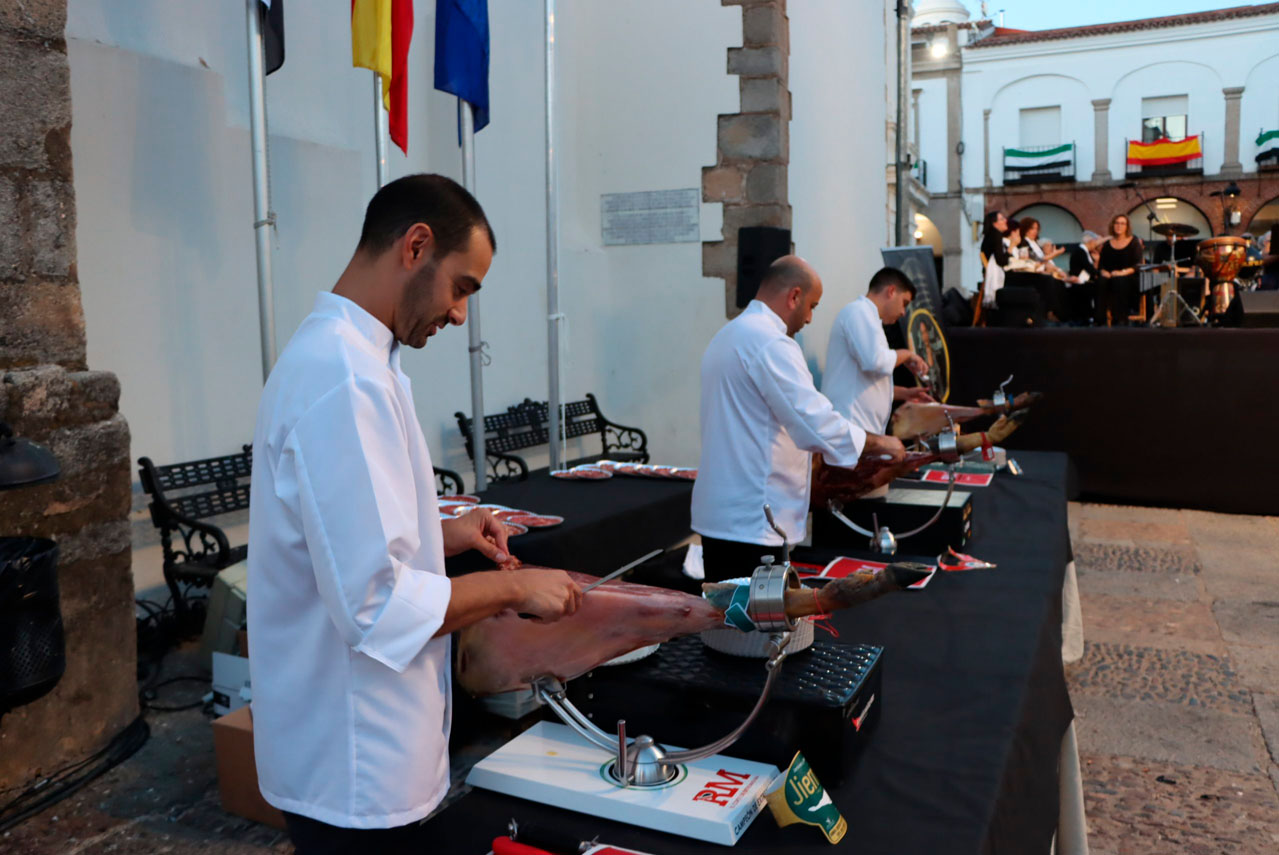 La Coral de la Escuela Municipal de Música ha abierto el acto, conducido por la periodista jerezana Andrea Menacho, quien ha dado paso a un vídeo realizado por RTV Jerez de los Caballeros, poniendo de relieve la gran riqueza histórica, artística y monumental de esta ciudad, el encanto de sus calles, plazas y rincones, su gastronomía, sus fiestas y tradiciones y la belleza de su entorno natural de dehesas, origen de uno de los manjares más apreciados del mundo como es el jamón ibérico de bellota, protagonista también de este acto en el que se ha ofrecido una degustación con el quehacer de varios maestros cortadores.