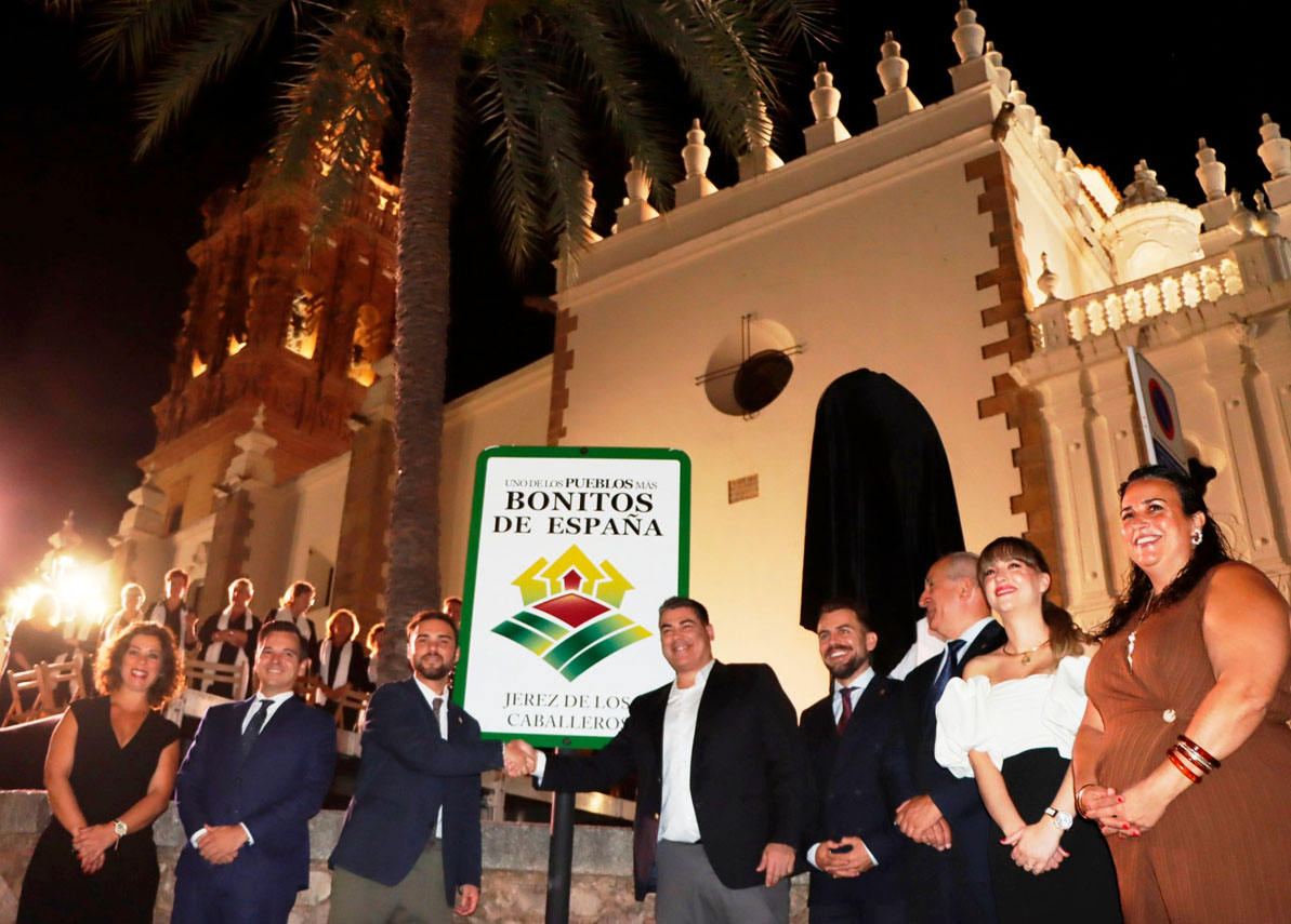 El momento más significativo del acto ha sido el descubrimiento de una placa con la inscripción: «Jerez de los Caballeros Uno de Los Pueblo Más Bonitos de España», en medio del aplauso de todos los asistentes que han llenado la citada plaza. La actuación de Naiala Narcisco, extremeña, natural de Barcarrota, ganadora de la pasada edición del Festival de la Canción de Extremadura que tiene su sede en Jerez de los Caballeros, ha puesto el broche a este emocionante acontecimiento.