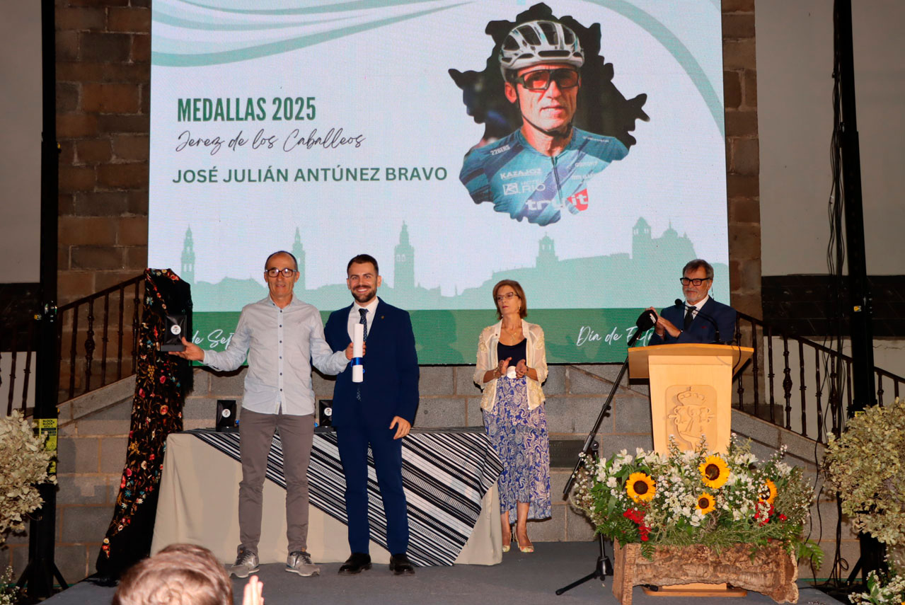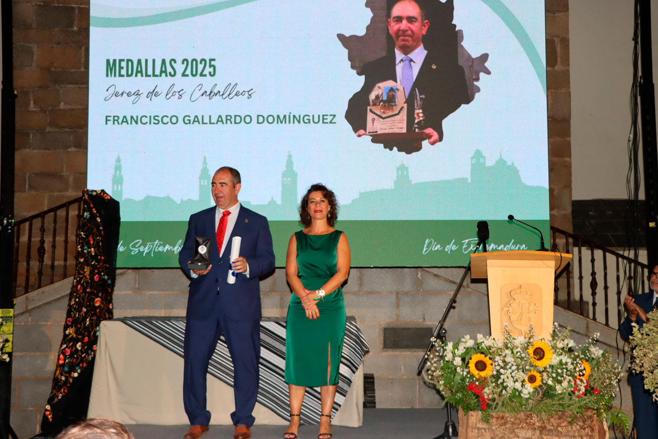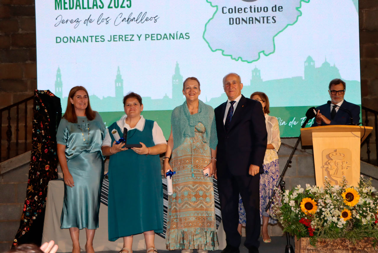 El momento más especial de este acto, ha tenido lugar con la entrega de la Medalla de Jerez de los Caballeros a personas y colectivos que se han destacado por su labor, esfuerzo, entrega y han contribuido al bienestar de esta ciudad, siendo testimonio de su identidad y de su vida: Manuel Gómez Caballo, José Julián Antúnez Bravo, Donantes de Jerez de los Caballeros y sus pedanías, Rafael Fernando García González ‘Nando Juglar’ y Francisco Gallardo Domínguez.