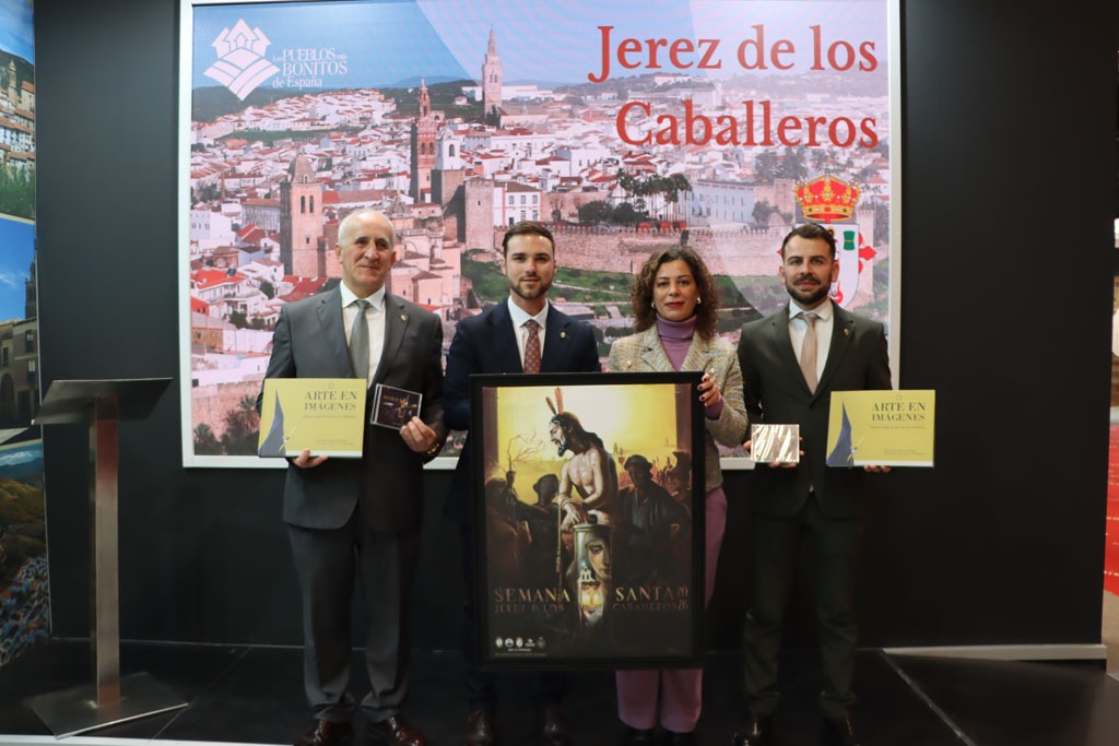 Jerez de los Caballeros ha presentado, a primera hora de esta tarde, en el stand de Los Pueblos Más Bonitos de España en FITUR, su Semana Santa, Fiesta de Interés Turístico Nacional que aspira a su declaración como de Interés Turístico Internacional.