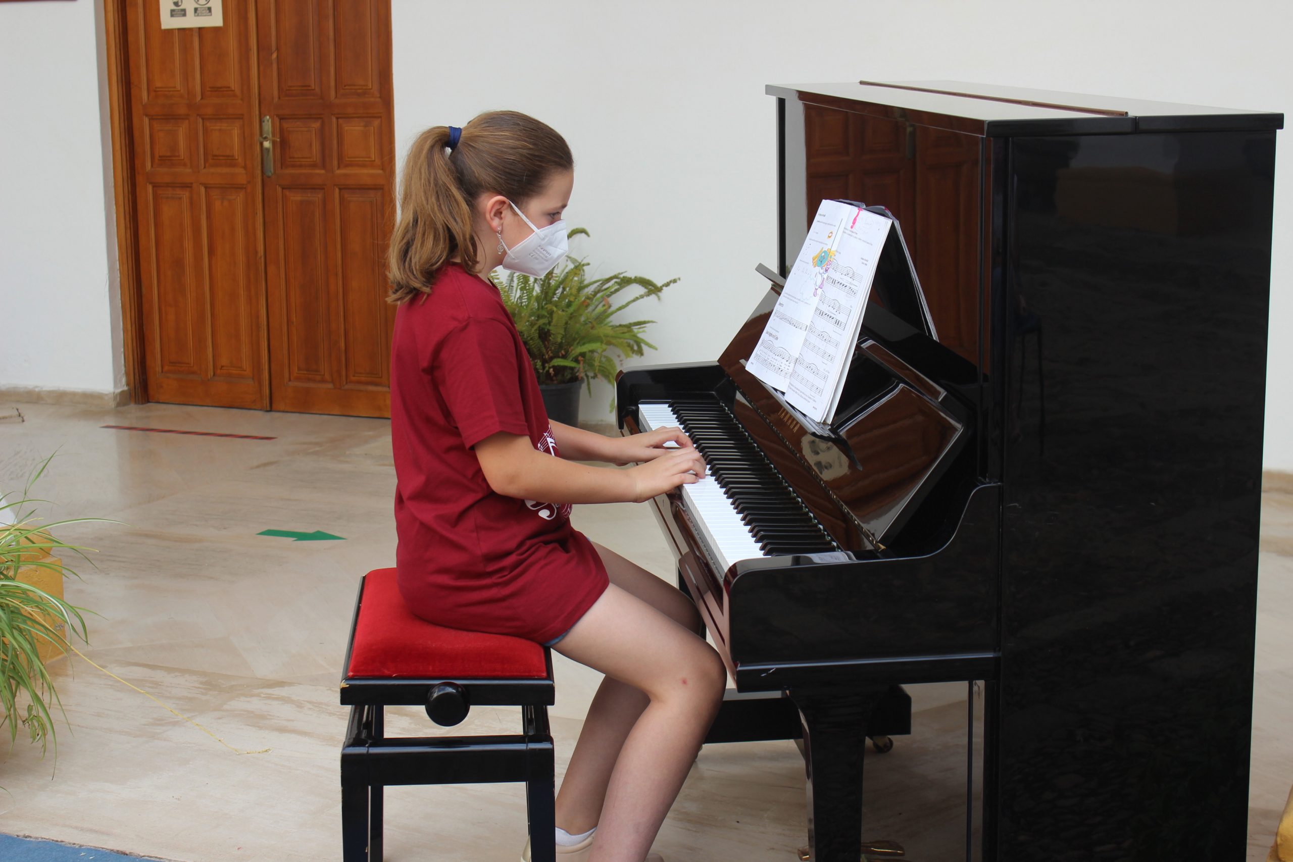 Alumnos y alumnas de las especialidades de: Piano, Guitarra, Violín, Coro, Infantil, Percusión, Plauta, Oboe, Clarinete, Requinto, Saxofón, Gaita, Trompeta, Trombón y Bombardino, han sido los protagonistas de estas audiciones que han marcado la clausura del curso. En ellas han puesto de relieve los conocimientos adquiridos a lo largo del curso que se ha desarrollado con clases online, cuando la situación lo ha requerido, y de manera presencial en todo lo posible.