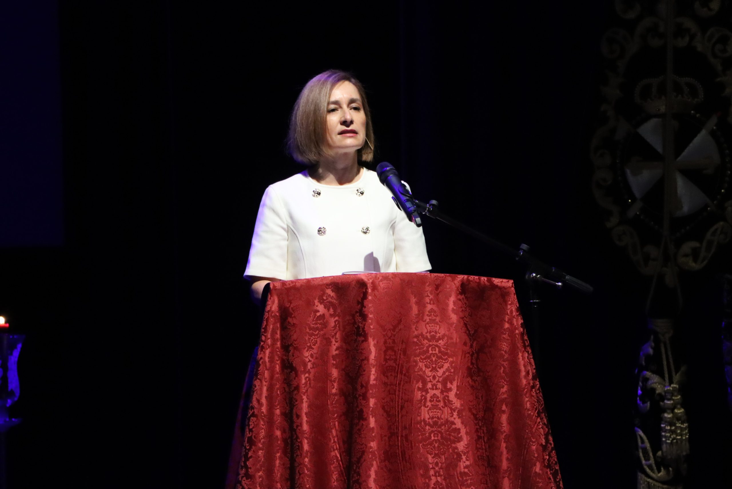 La pregonera ha abierto su intervención con una referencia vital y de fe que ha ido vertebrando todo su Pregón, situándolo en una esfera reconocible y cercana, porque como ha reiterado hilvanando cada momento, “Jerez de los Caballeros no duerme en Semana Santa, Jerez siente, sufre y espera”.